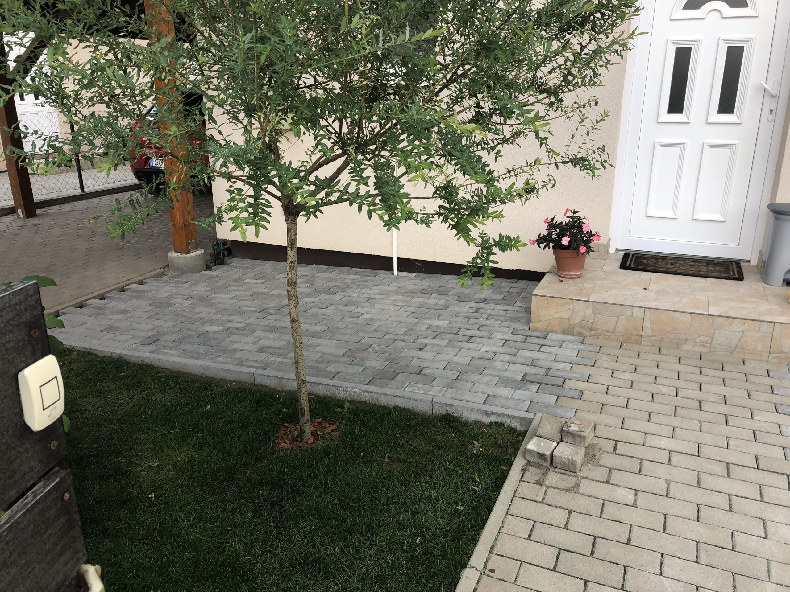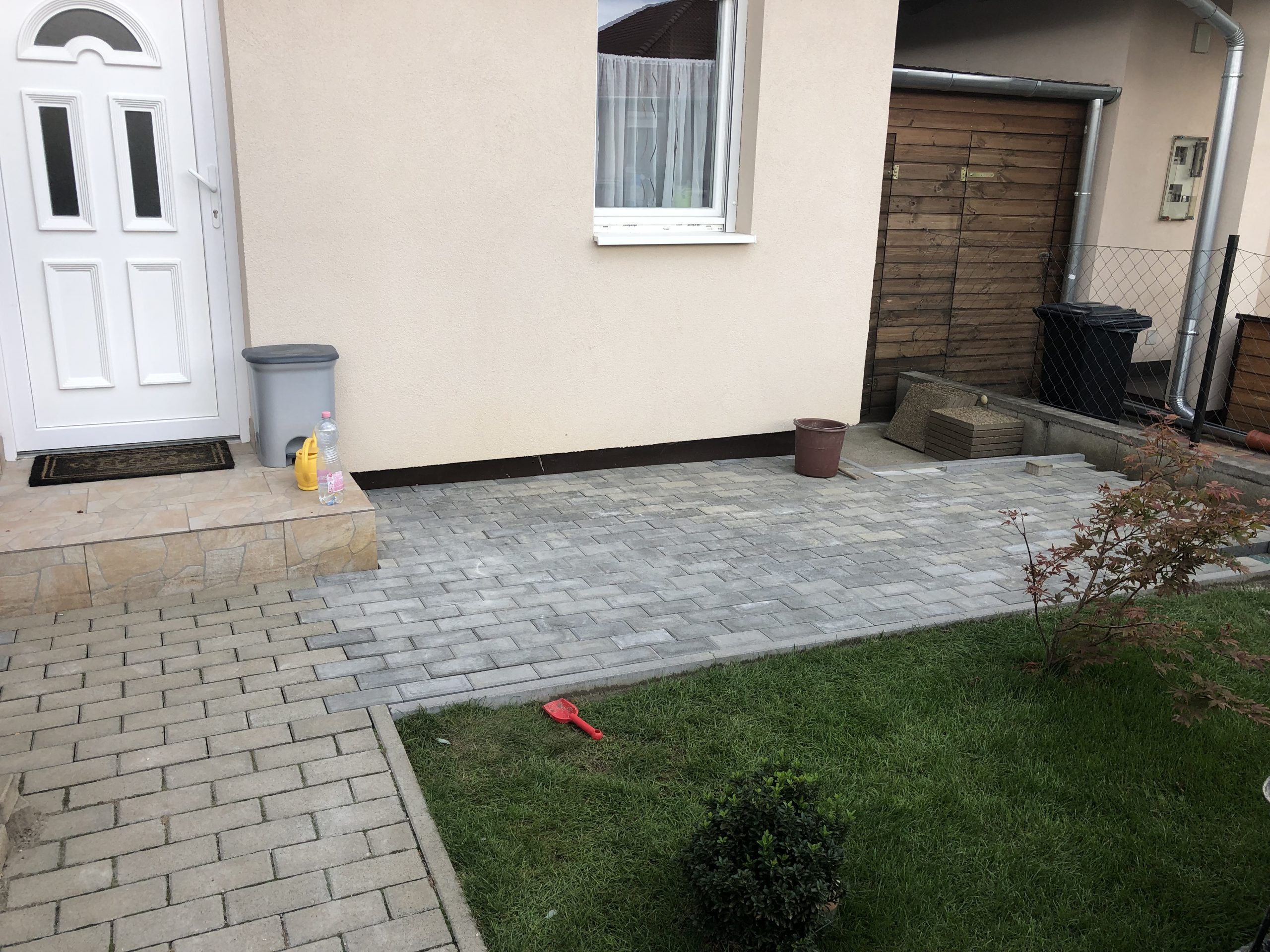 Helyszíni felmérés után összeállítunk egy tételes árkalkulációt. Ezt követően kiássuk az alapot olyan mélységben, hogy a megfelelő rétegrendet ki tudjuk alakítani a későbbi megsüllyedések elkerülése végett. Kezdésnek a szegélyköveket betonozzuk le amivel beállítjuk a szintjét és lejtését burkolandó területünknek. Majd ckt beton alapot készítünk, amelynek van vízáteresztő képessége de már megvan a megfelelő tartása. Ezután egy fektető ágyazattal folytatjuk zúzott kőből vagy kétszerrostált sóderből amit a térkő lerakása követ, végül a réseket kvarchomokkal fugázzuk/besöpörjük. Utolsó lépésként lapvibrátorral tömörítünk. Teljeskörűen intézünk minden munka- és szállítási folyamatot, legyen szó a föld el-vagy az építőanyagok kiszállításáról és természetesen rendben és szemétmentesen adjuk át munkáinkat.